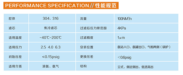 ●***技術,符合氨區(qū)安全標準,可在承工作狀態(tài)進行排污及更換濾芯。